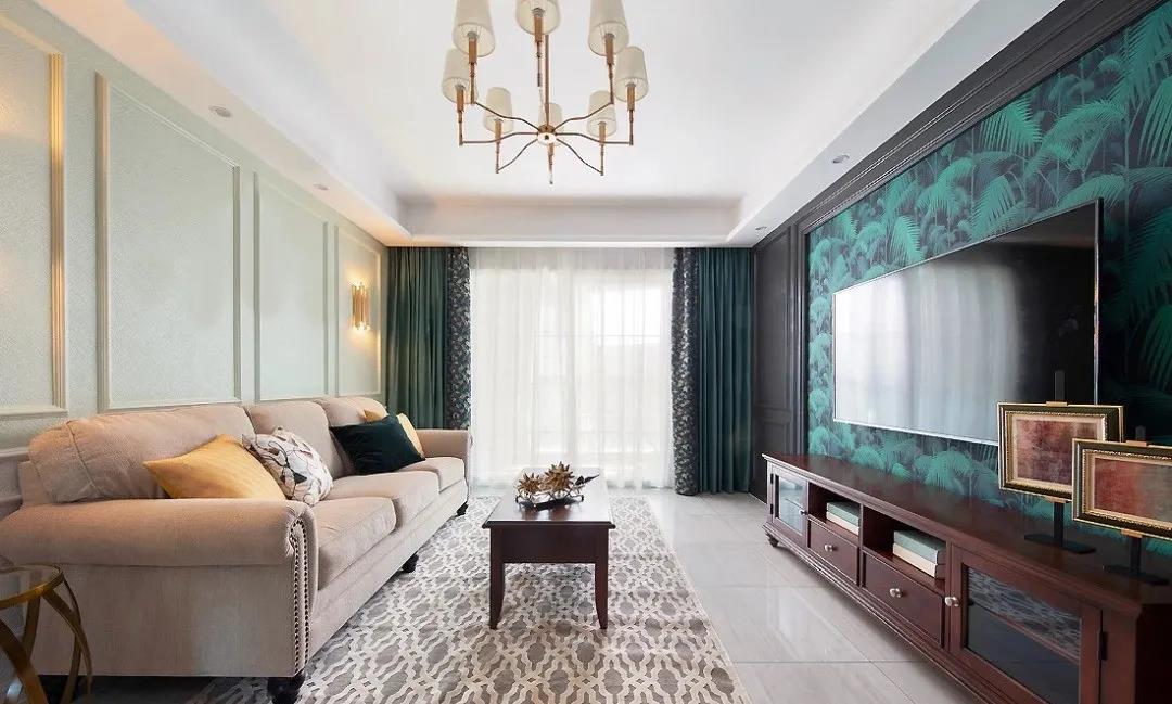 声明:转载请注明来源:东家乐家装 » 97㎡现代美式风格新房装修,背景墙复古细腻!