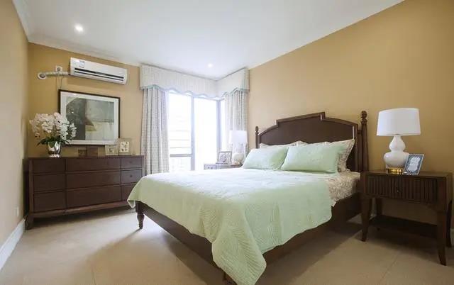 主卧采光不算太好,所以简装是最好的选择,现在这样看着轻松舒适。吊顶设计跟客厅一样,不过放弃了主灯。