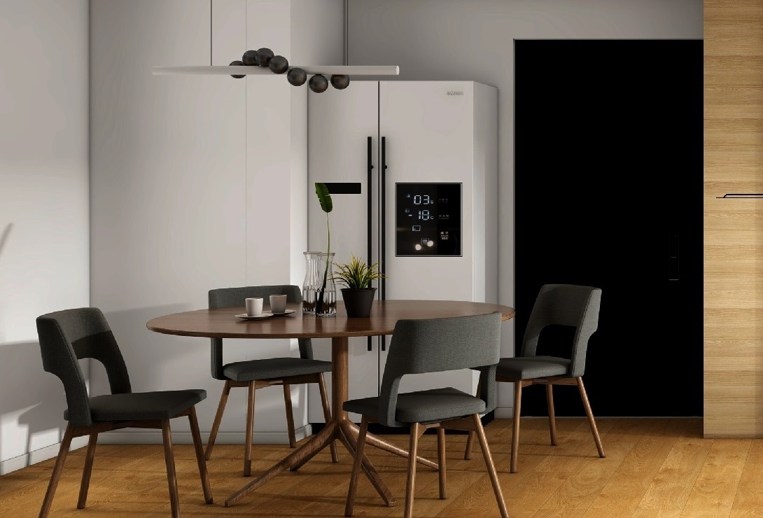 打开传统厨房设置,加强厨房与餐厅一体化,紧密的将厨房与餐厅一体化,拓宽了空间视野的同时也扩大了实际的空间层次。冰箱位置的放置也加强了业主实际的使用便利性。