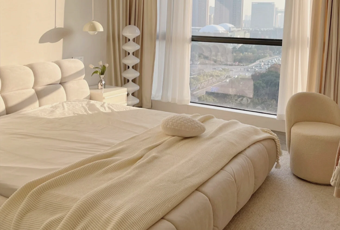 色彩方面,现代奶油风强调淡雅、温和且略带复古感的奶白色调,这种色调犹如新鲜奶油般温润细腻,营造出宁静、和谐的空间氛围。通常会搭配浅木色或米灰色等相近色调,以此来强化整体空间的统一性和连贯性。