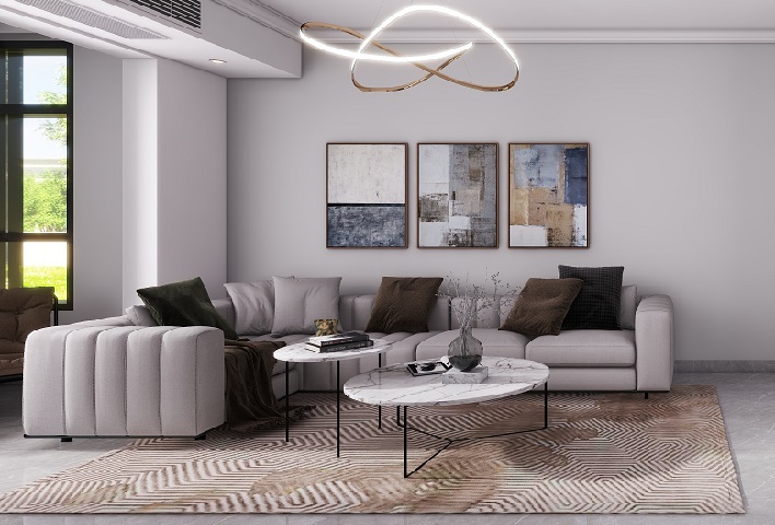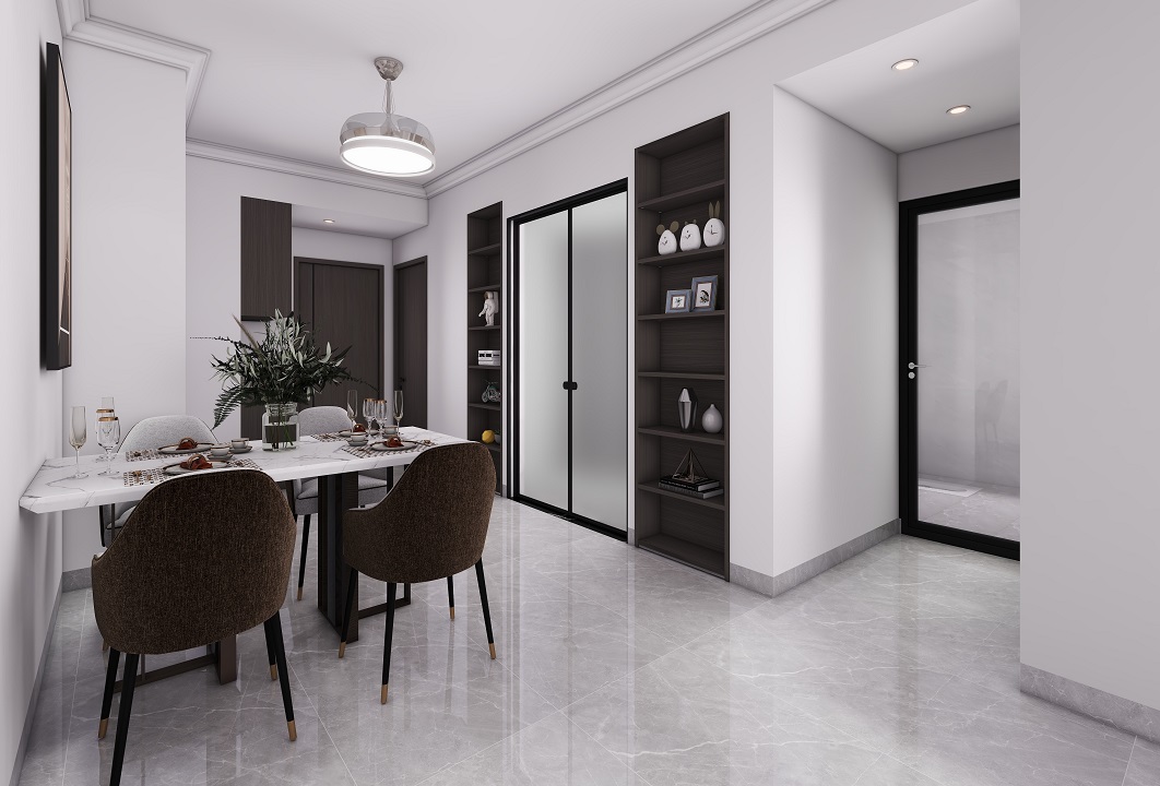 现代简约风倾向于中性色调,如白色、灰色、米色等,这些颜色纯净且具有延伸感,能够营造出宽敞明亮、通透舒适的空间氛围。同时,通过简洁明快的线条勾勒出清晰的几何形态,展现出现代建筑艺术的力量感和秩序美。
