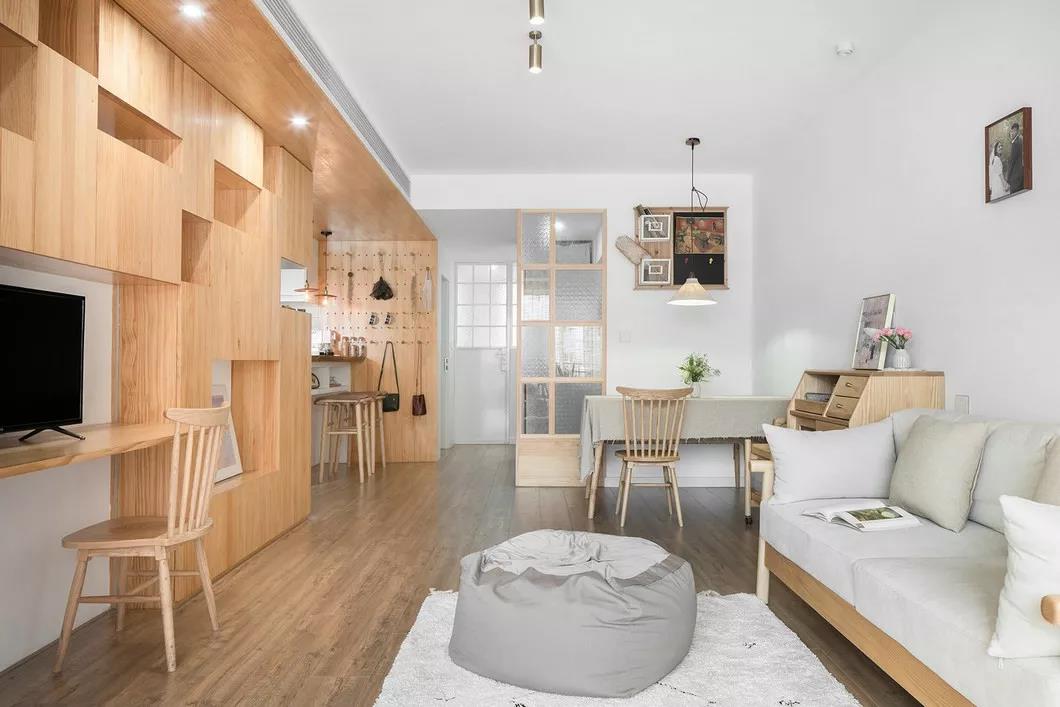 原木色家具搭配那些纯白色或者近木色的颜色,会显得更加精美而且更具有层次感。原木色的地板搭上白色或者近木色的门具有非常不错的效果。